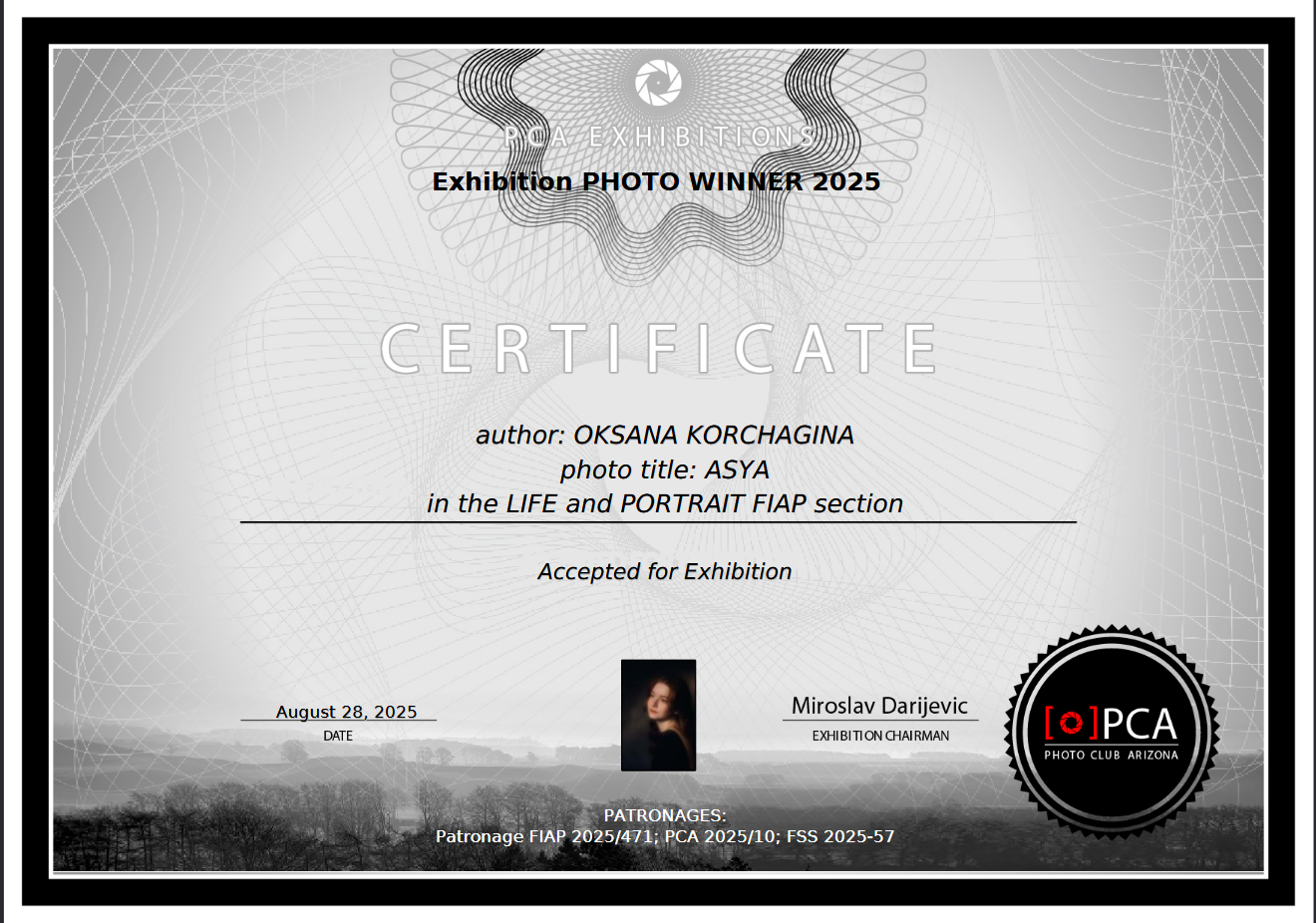 Финалист конкурса PHOTO WINNER 2025 — Сербия под патронажем FIAP (Международной федерации фотографического искусства).